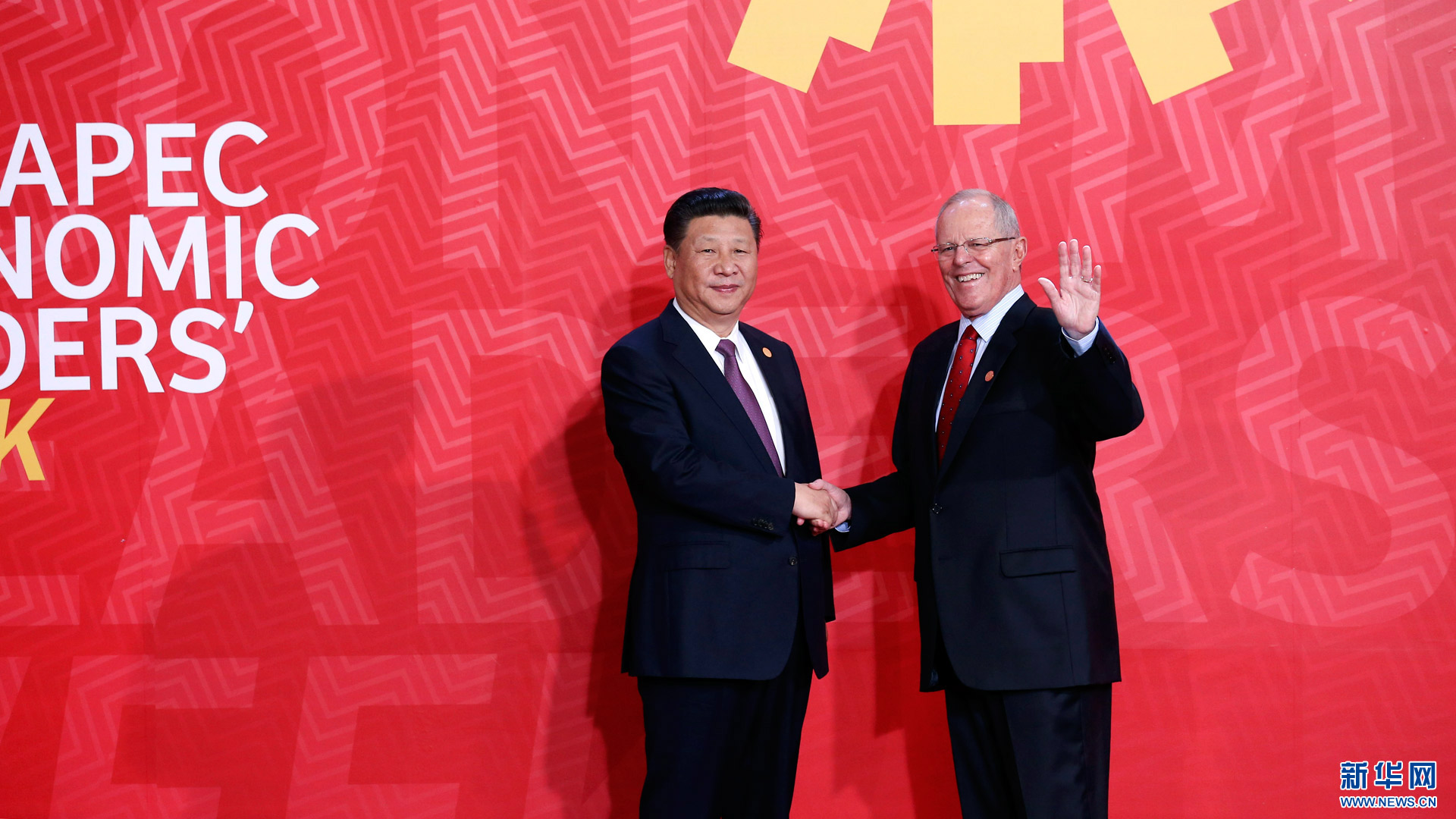 11月20日,亞太經(jīng)合組織第二十四次領(lǐng)導(dǎo)人非正式會議在秘魯利馬舉行。國家主席習(xí)近平出席并發(fā)表題為《面向未來開拓進(jìn)取促進(jìn)亞太發(fā)展繁榮》的重要講話。這是會議開始前,習(xí)近平受到秘魯總統(tǒng)庫琴斯基的熱情迎接。 新華社記者 龐興雷 攝2016-11-21