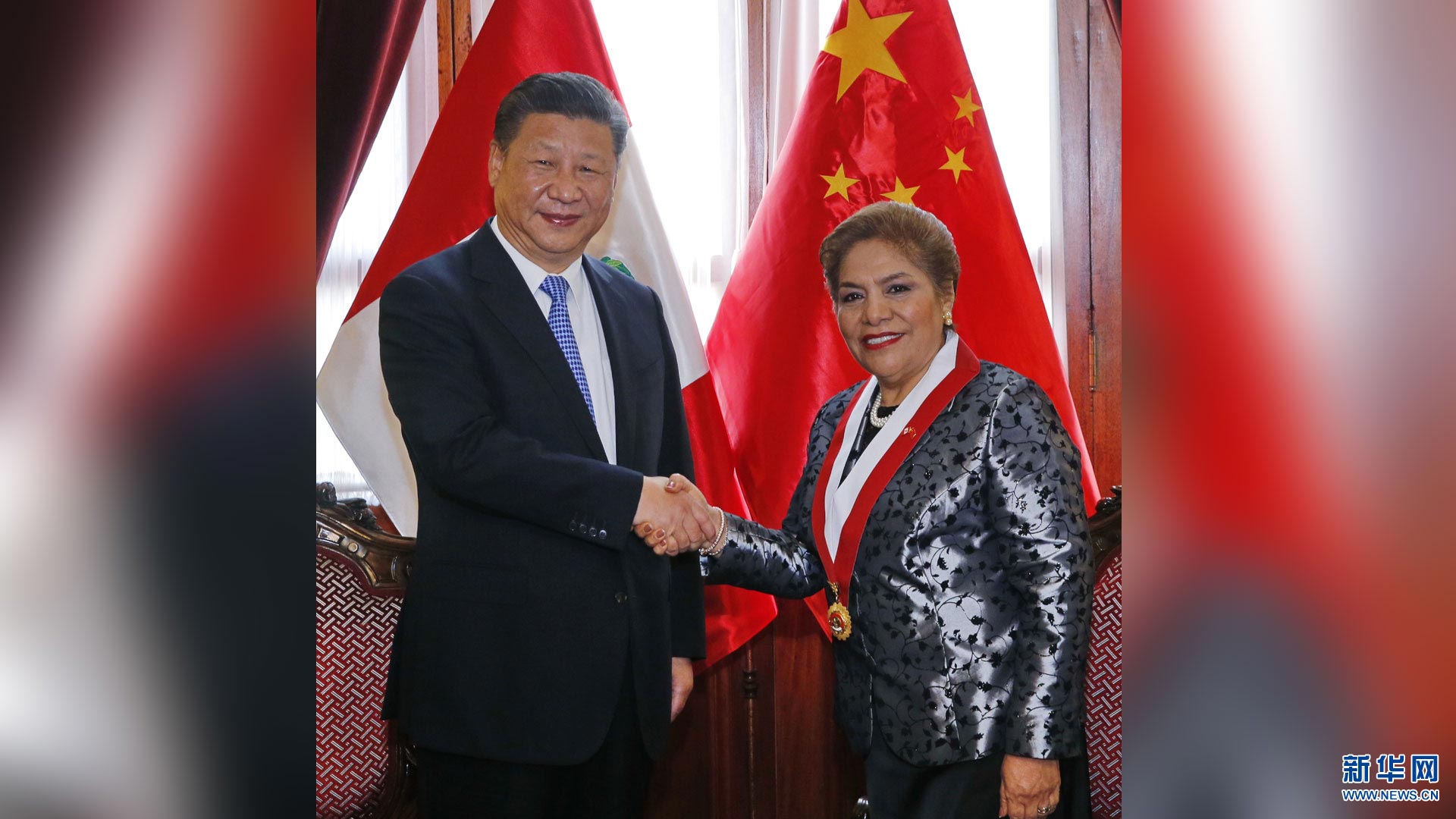 11月21日,國家主席習(xí)近平在利馬會見秘魯國會主席薩爾加多。新華社記者 鞠鵬 攝2016-11-23