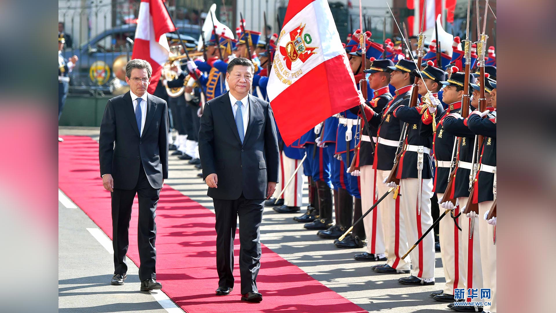 11月21日,國家主席習(xí)近平在利馬同秘魯總統(tǒng)庫琴斯基舉行會談。會談前,習(xí)近平出席庫琴斯基在總統(tǒng)府前廣場舉行的歡迎儀式。 新華社記者李濤 攝2016-11-23