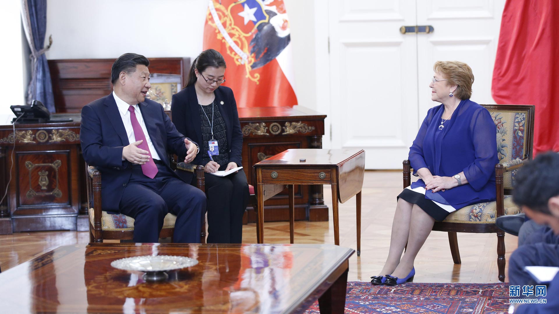 11月22日,國家主席習(xí)近平在圣地亞哥同智利總統(tǒng)巴切萊特舉行會談。 新華社記者 鞠鵬 攝2016-11-23