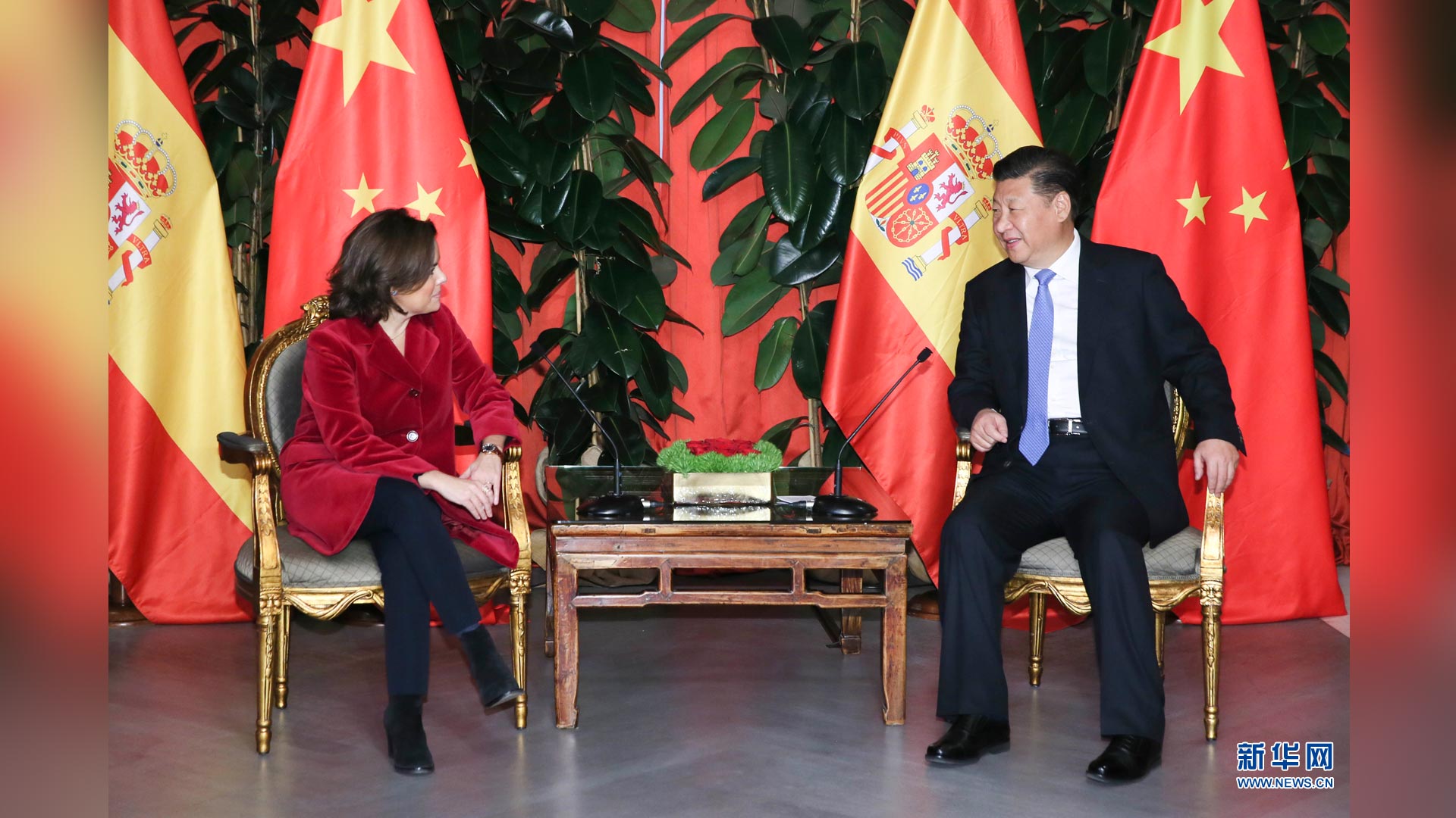 11月24日,國家主席習(xí)近平在西班牙大加那利島會見西班牙副首相薩恩斯。 新華社記者 蘭紅光 攝2016-11-25