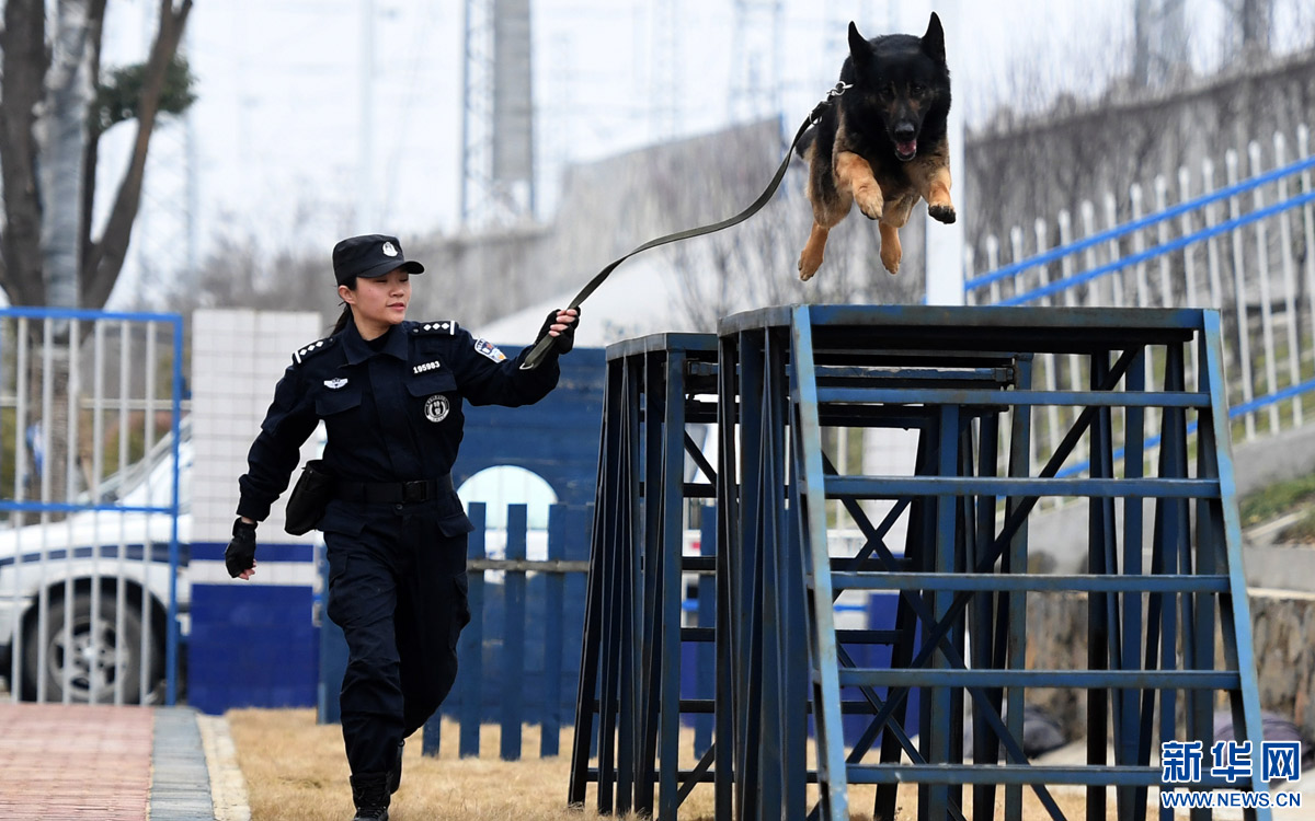 2月5日,劉慧和“威利”在警犬基地訓練。新華社記者 程敏 攝
