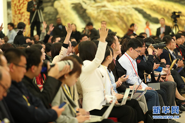 2017年10月17日下午,中國共產(chǎn)黨第十九次全國代表大會新聞發(fā)言人在人民大會堂三樓金色大廳舉行新聞發(fā)布會,并回答中外記者提問。圖為中國共產(chǎn)黨第十九次全國代表大會新聞發(fā)言人庹震。新華網(wǎng) 翟子赫 攝