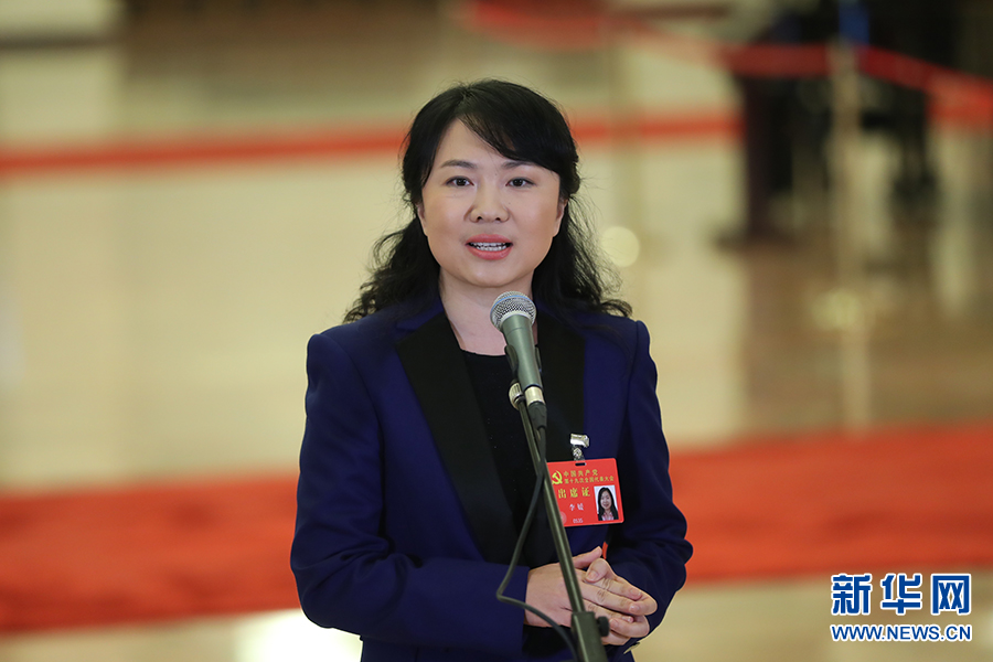 10月19日,“黨代表通道”第二場采訪活動在人民大會堂舉行。圖為李媛代表接受采訪。新華網(wǎng) 翟子赫 攝