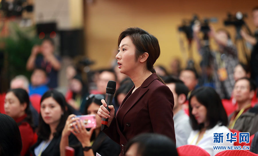 ??? 10月20日,十九大新聞中心舉辦集體采訪活動(dòng),主題為“文化發(fā)展開創(chuàng)新局面”。圖為中國(guó)國(guó)際電視臺(tái)記者提問。新華網(wǎng) 陳杰攝