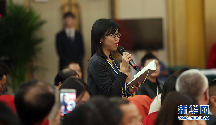 ??? 10月20日,十九大新聞中心舉辦集體采訪活動(dòng),主題為“實(shí)施創(chuàng)新驅(qū)動(dòng)發(fā)展戰(zhàn)略”。圖為中國(guó)日?qǐng)?bào)記者提問(wèn)。新華網(wǎng) 郝廣鵬攝