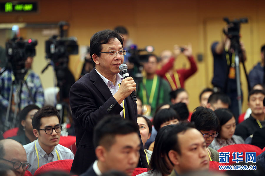 10月21日,十九大新聞中心舉辦記者招待會,邀請國家發(fā)展改革委黨組書記、主任何立峰,副主任張勇,副主任寧吉喆介紹以新發(fā)展理念為引領(lǐng),推進(jìn)中國經(jīng)濟(jì)平穩(wěn)健康可持續(xù)發(fā)展有關(guān)情況,并回答記者提問。圖為路透社記者提問。新華網(wǎng) 郝廣鵬攝