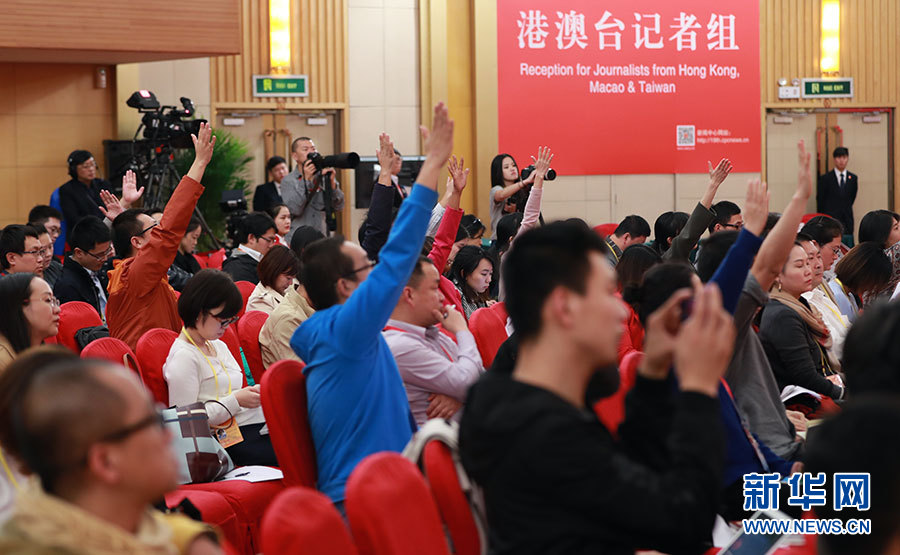 10月23日,十九大新聞中心舉辦集體采訪活動(dòng),主題為“打好生態(tài)環(huán)保攻堅(jiān)戰(zhàn)”。圖為現(xiàn)場(chǎng)記者踴躍舉手提問(wèn)。新華網(wǎng) 郝廣鵬攝