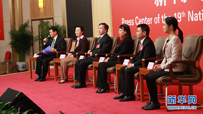 10月23日,十九大新聞中心舉辦集體采訪活動,主題為“打好生態(tài)環(huán)保攻堅戰(zhàn)”。圖為集體采訪活動現(xiàn)場。新華網(wǎng) 郝廣鵬攝