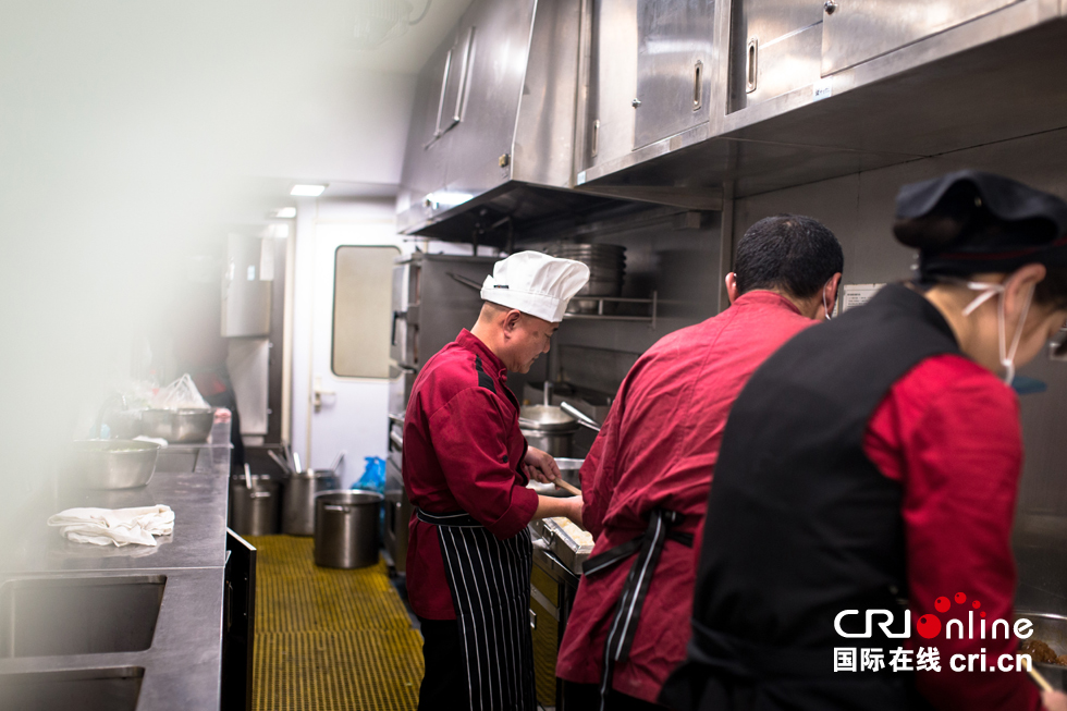 白振慶師傅說餐車上的廚師必須要手腳麻利,旅客可以在餐廳里久等一些,但是在餐車吃飯的都是急茬兒的。白師傅1980年開始在餐車工作,今年是他的第37個(gè)春運(yùn),在這37個(gè)春運(yùn)中只有今年的除夕夜是在家過的。白師傅說在家過年當(dāng)然高興,不過在車上和旅客一起過年,為旅客做一頓可口的年夜飯更是一種責(zé)任。