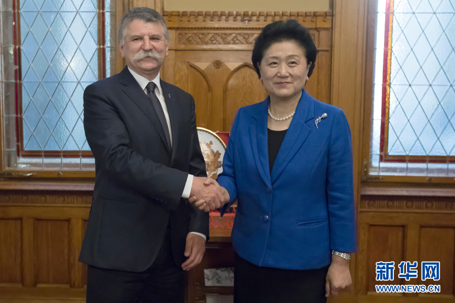 6月19日,在匈牙利布達(dá)佩斯,中國國務(wù)院副總理劉延?xùn)|(右)會(huì)見匈牙利國會(huì)主席克韋爾。? 新華社發(fā)(弗爾季·奧蒂洛攝)