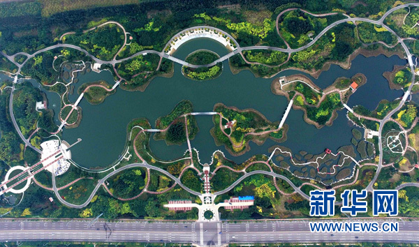 京津冀俯瞰天津?yàn)I海新區(qū)臨港經(jīng)濟(jì)區(qū)的臨港生態(tài)濕地公園(2016年10月21日攝)。 新華社記者 岳月偉 攝