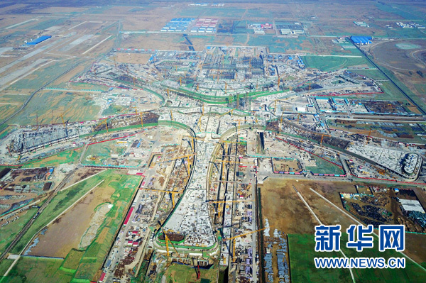 這是正在施工的北京新機(jī)場(chǎng)主航站樓(2月24日攝)。 新華社記者 鞠煥宗 攝