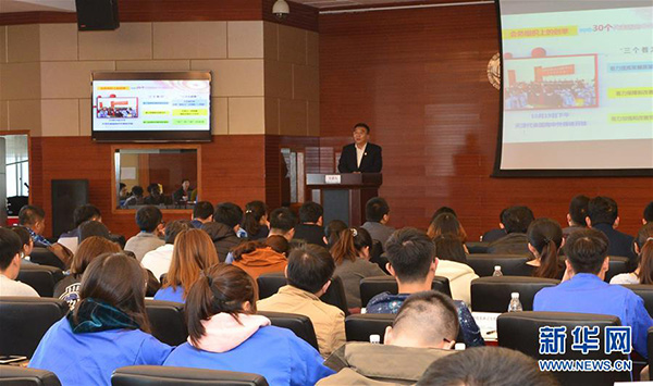 在國網(wǎng)天津濱海公司,張黎明在“十九大代表與國資系統(tǒng)青年面對面宣講會”上宣講十九大精神(11月10日攝)。 新華社發(fā)
