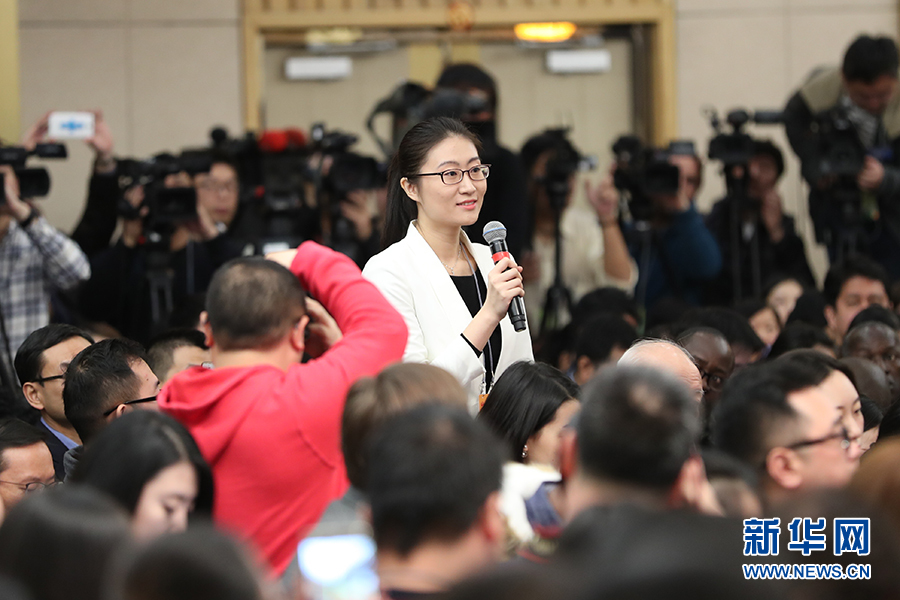 十二屆全國人大五次會議新聞中心于3月8日(星期三)10時在梅地亞中心多功能廳舉行記者會,邀請外交部部長王毅就“中國的外交政策和對外關(guān)系”的相關(guān)問題回答中外記者的提問。圖為人民日報記者提問。新華網(wǎng)/中國政府網(wǎng) 孫韜 攝?