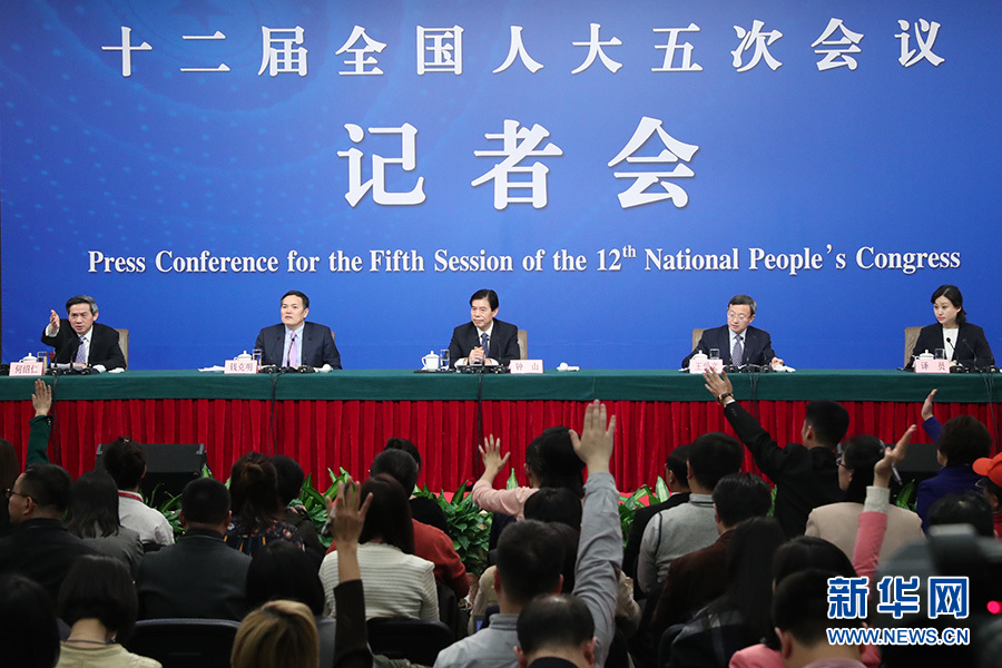 3月11日,十二屆全國人大五次會議新聞中心舉行記者會,主題是“改革開放調(diào)結(jié)構(gòu) 創(chuàng)新驅(qū)動促發(fā)展”,商務(wù)部部長鐘山、副部長王受文、副部長錢克明出席并回答中外記者的提問。圖為記者會現(xiàn)場。 新華網(wǎng)/中國政府網(wǎng) 傅義洲 攝