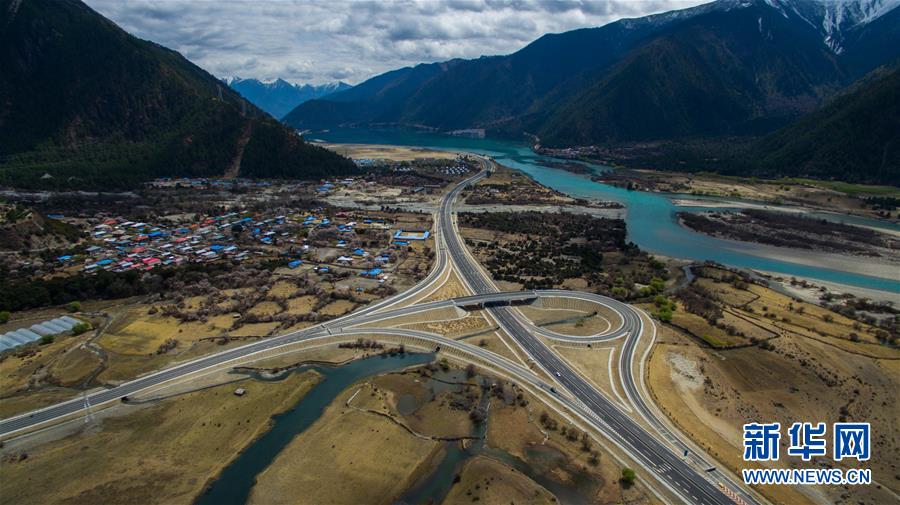 俯瞰西藏林芝境內(nèi)的拉林高等級公路(2016年4月4日攝)。拉林高等級公路起于拉薩市,止于林芝巴宜區(qū)八一鎮(zhèn)。為把拉林高等級公路建設(shè)成為生態(tài)通道、綠色長廊、景觀大道,西藏自治區(qū)林業(yè)廳在科學(xué)指導(dǎo)和嚴格監(jiān)管下,堅持不破壞、少擾動、多恢復(fù)原則,對拉林高等級公路邊坡進行綠化,種植草坪。新華社記者 普布扎西 攝