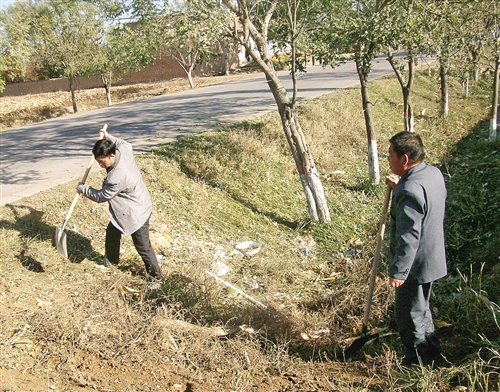 李進(jìn)禎(左一)生前帶領(lǐng)村民對(duì)鄉(xiāng)村環(huán)境綜合整治。 (資料圖片)