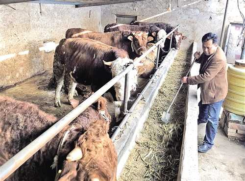 在李進(jìn)禎幫扶下,建檔立卡的貧困戶馬俊通過(guò)養(yǎng)牛,走上脫貧致富之路。(資料圖片)