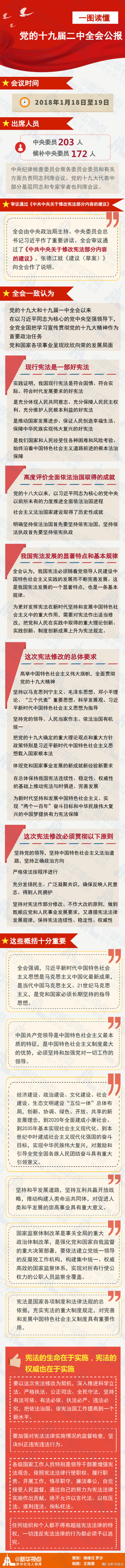 新華網(wǎng)北京1月20日電 黨的十九屆二中全會公報新鮮出爐,公報有哪些重要內(nèi)容?這次憲法修改的總體要求是什么?一圖讀懂!(據(jù)新華視點微博)