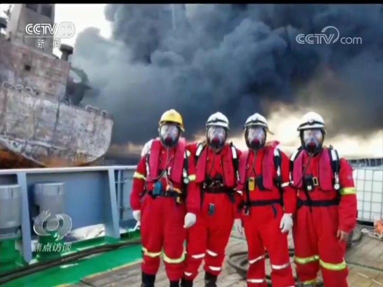 交通運輸部東海救助局救助指揮處處長蔣文輝說:”除了前面當時現場前頭一號艙跟首間艙的位置,后面整個都是在燃燒、爆炸以及濃煙覆蓋中,包括我們后面的那個生活區(qū),整個在爆炸和燃燒、濃煙中。“