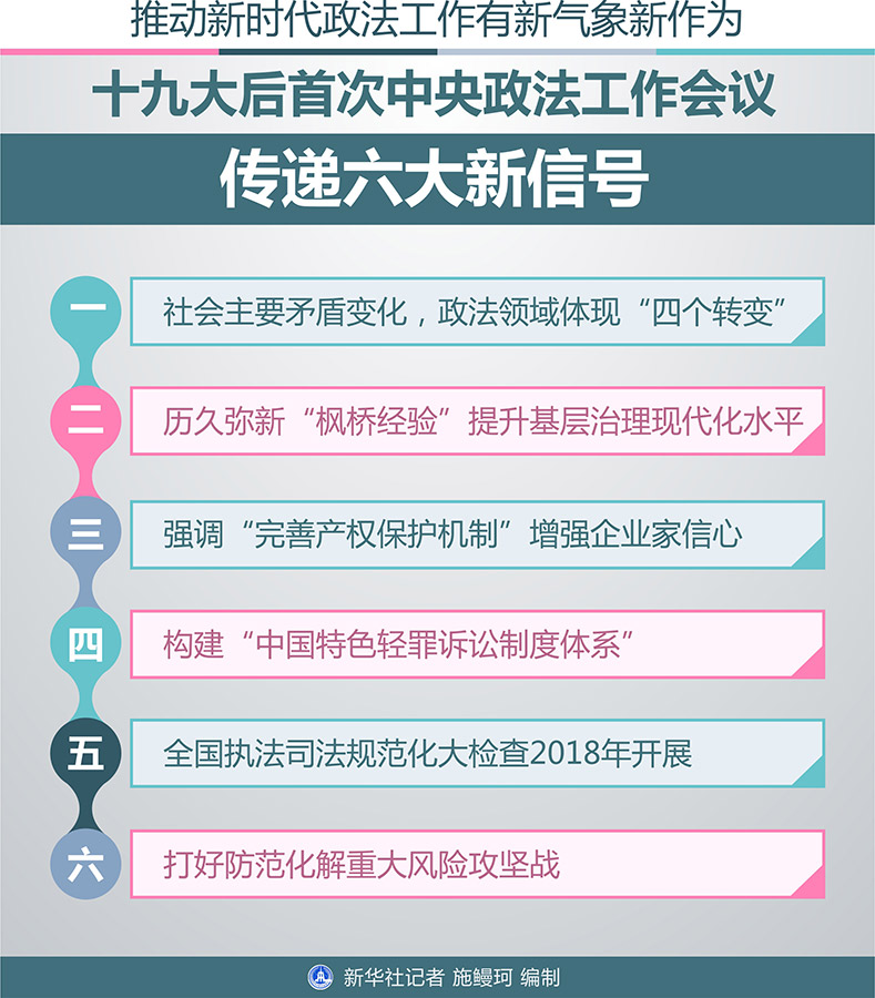 新時(shí)代政法工作如何履行好黨和人民賦予的職責(zé)使命?2018年政法工作提出哪些新要求、作出哪些新部署?22日至23日,黨的十九大后首次召開(kāi)的中央政法工作會(huì)議傳遞了新信號(hào)。新華社記者采訪(fǎng)權(quán)威專(zhuān)家為你解讀。