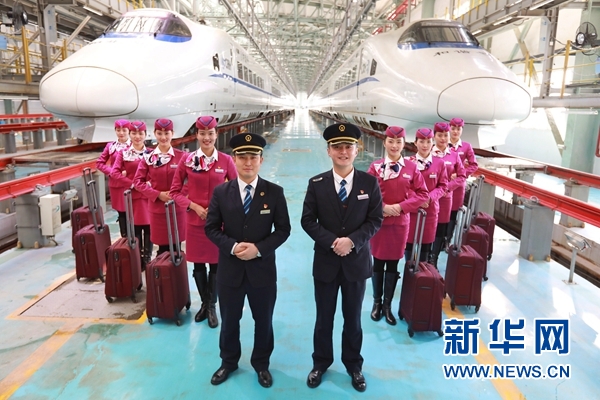 1月16日,擔(dān)任首發(fā)列車值乘工作的貴陽客運段司機和乘務(wù)員在貴陽亮相。新華社記者劉續(xù)攝
