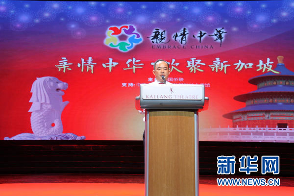 中國(guó)駐新加坡使館臨時(shí)代辦房新文在致辭中表示,“親情中華”藝術(shù)團(tuán)千里迢迢來(lái)到新加坡,為我們帶來(lái)精彩的藝術(shù)盛宴和美好祝福,增進(jìn)了中新兩國(guó)人民的情誼,增強(qiáng)了中新兩國(guó)文化交流的活力。