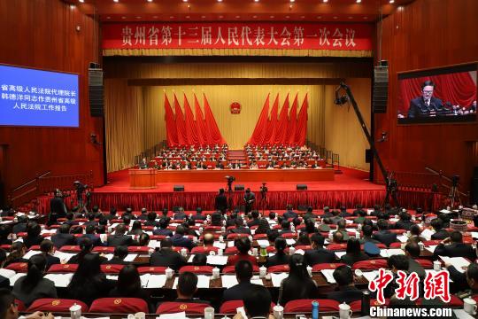 1月28日,貴州省十三屆人大一次會(huì)議舉行第二次全體會(huì)議。圖為貴州省高級(jí)人民法院代理院長(zhǎng)韓德洋作貴州省高級(jí)人民法院工作報(bào)告?!■暮陚悺z