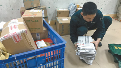 春節(jié)將至,又到了萬(wàn)家團(tuán)圓的日子。但環(huán)市西路投遞部有許多像羅金城一樣的年輕人,并沒(méi)有回家的打算。投遞部主任黃大兵表示:“每年過(guò)節(jié)前夕,都是我們業(yè)務(wù)最忙的時(shí)候,平時(shí)一天3000多件,現(xiàn)在要增加一倍多?!?/p>