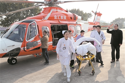 直升機(jī)一降落,早早候著的救護(hù)車(chē)就把患者送到醫(yī)院。