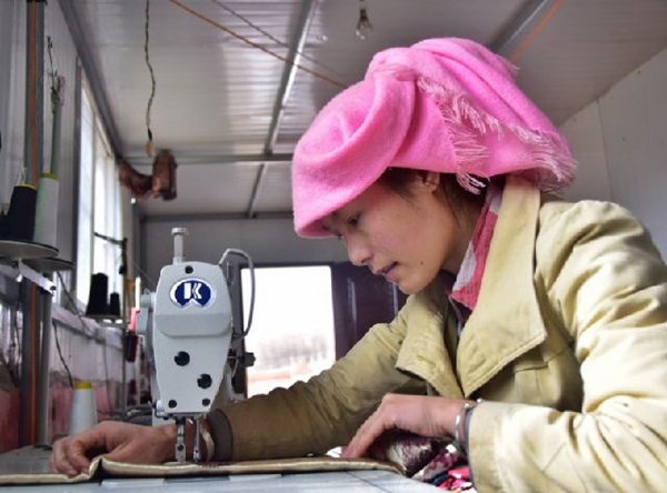 記者在村民文昌多吉的作坊里看到,地上鋪滿(mǎn)待剪裁的布料,幾臺(tái)裁縫機(jī)整齊擺放著。冬日的暖陽(yáng)透過(guò)玻璃窗照射進(jìn)來(lái),多吉和妻子一人負(fù)責(zé)剪裁,一人負(fù)責(zé)縫紉。而平時(shí)他家有5個(gè)人做,最多的時(shí)候一天可掙1000元,相當(dāng)于過(guò)去種地一年的收入。