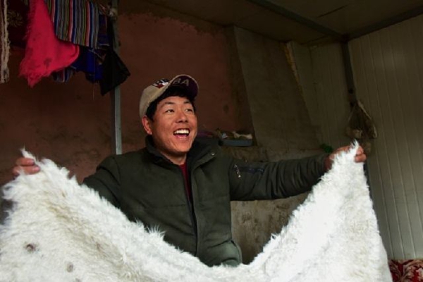 松多村鑲嵌在縣城城郊一條干涸的河谷上。這里干旱少雨,風(fēng)吹黃土漫天,只能種些青稞、土豆為生?!澳菚r(shí)我們家8口人,住的是土坯房,吃的是洋芋,人均耕地面積不足2畝,一年種的莊稼連來(lái)年買(mǎi)肥料的錢(qián)都不夠?!毙W(xué)還沒(méi)畢業(yè),旦增加就輟學(xué)在家,重復(fù)著父輩的生活,不到20歲就結(jié)婚生子,同樣靠種地維持生計(jì),日子卻越發(fā)捉襟見(jiàn)肘。