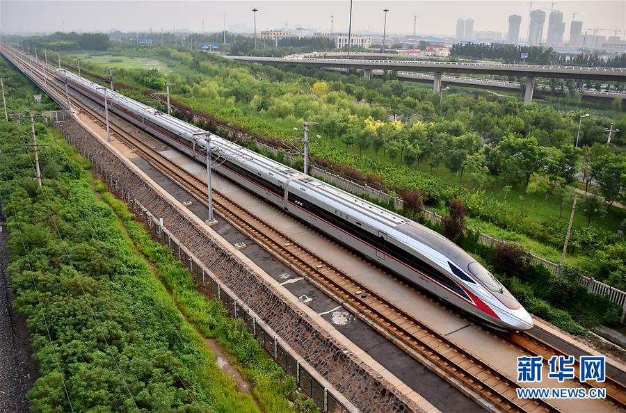 2017年8月21日,從北京南開往天津的C2001次“復興號”中國標準動車組駛?cè)胩旖蚴袇^(qū)。自當日起,鐵路部門擴大“復興號”動車組列車開行范圍,京津城際列車開行19.5對“復興號”動車組列車。新華社發(fā)(楊寶森 攝)