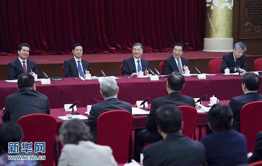 3月4日,中共中央政治局常委、全國政協(xié)十三屆一次會議主席團(tuán)會議主持人汪洋看望出席全國政協(xié)十三屆一次會議的中共界委員并參加討論。新華社記者 李濤 攝