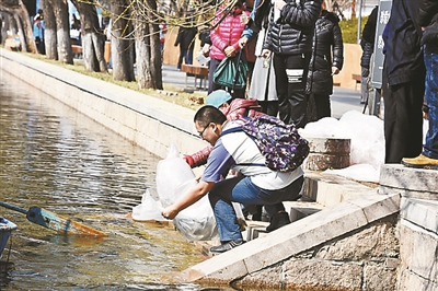 亮馬河投放8000尾白鰱魚和花鰱魚