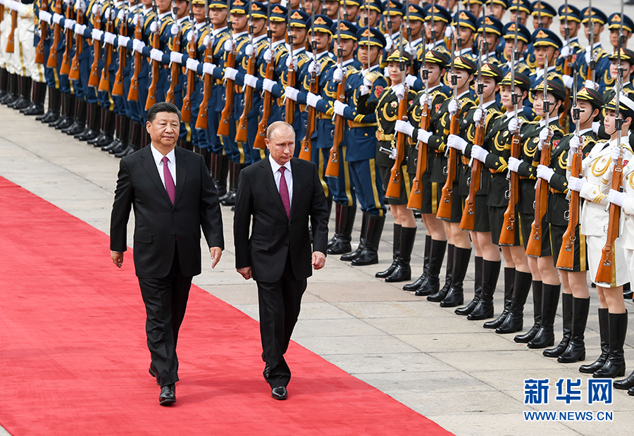 6月8日,國家主席習(xí)近平在北京人民大會(huì)堂同俄羅斯總統(tǒng)普京舉行會(huì)談。這是會(huì)談前,習(xí)近平在人民大會(huì)堂東門外廣場為普京舉行歡迎儀式。新華社記者 陳曄華 攝
