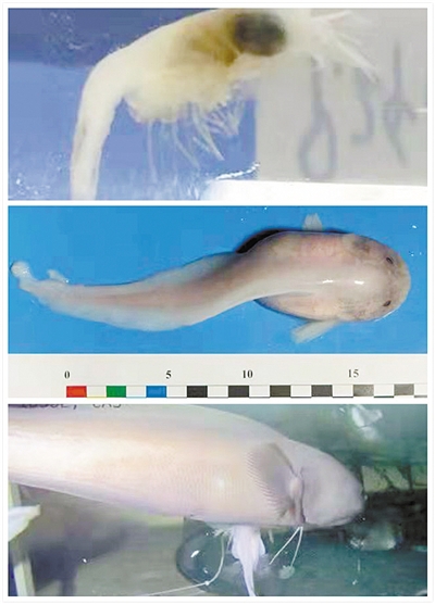此次科考的許多發(fā)現(xiàn)創(chuàng)下了國(guó)際紀(jì)錄——在國(guó)際上首次誘捕獲得全程低溫保存的7000米級(jí)3條獅子魚(yú)樣品和9000米級(jí)2只糠蝦樣品;國(guó)際上首次在7012米水深發(fā)現(xiàn)索深鼬鳚屬魚(yú)類,這是已知的該屬存活的最大深度;國(guó)際上首次在同一潛次實(shí)現(xiàn)全海深垂直分層水體微生物原位富集與固定取樣,最大深度10890米。