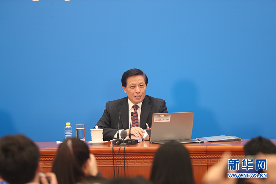 3月4日,十三屆全國(guó)人大一次會(huì)議在人民大會(huì)堂新聞發(fā)布廳舉行新聞發(fā)布會(huì),由大會(huì)發(fā)言人張業(yè)遂就大會(huì)議程和人大工作相關(guān)的問(wèn)題回答中外記者的提問(wèn)。圖為張業(yè)遂回答記者提問(wèn)。新華網(wǎng)/中國(guó)政府網(wǎng) 陳杰 攝