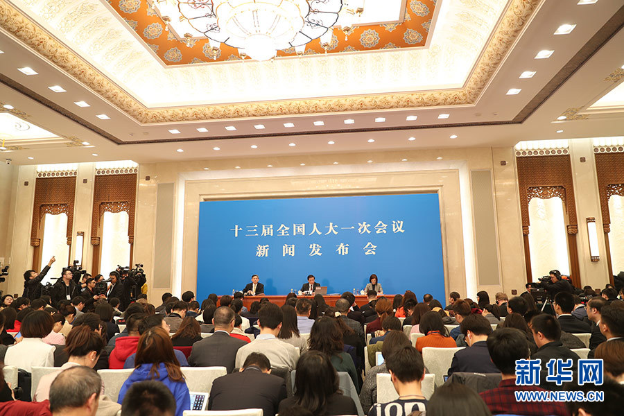 3月4日,十三屆全國人大一次會議在人民大會堂新聞發(fā)布廳舉行新聞發(fā)布會,由大會發(fā)言人張業(yè)遂就大會議程和人大工作相關(guān)的問題回答中外記者的提問。圖為新聞發(fā)布會現(xiàn)場。新華網(wǎng)/中國政府網(wǎng) 陳杰 攝
