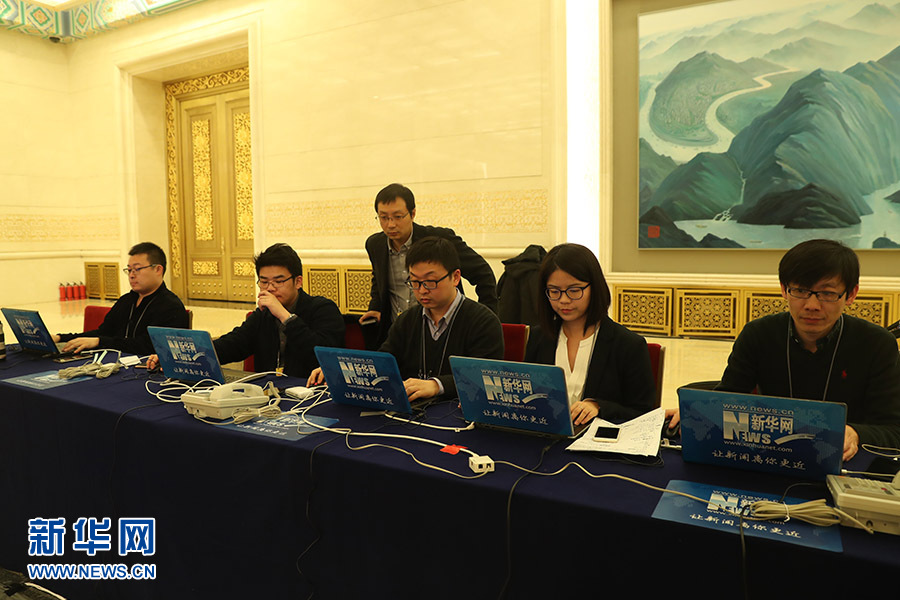 民主黨派中央和全國工商聯(lián)領(lǐng)導(dǎo)人記者會3月6日下午在人民大會堂金色大廳舉行,邀請民革中央主席萬鄂湘、民盟中央主席丁仲禮、民建中央主席郝明金、民進中央主席蔡達峰、農(nóng)工黨中央主席陳竺、致公黨中央主席萬鋼、九三學(xué)社中央主席武維華、臺盟中央主席蘇輝、全國工商聯(lián)主席高云龍回答記者提問。圖為現(xiàn)場直播團隊正在進行準備工作。新華網(wǎng)/中國政府網(wǎng) 陳杰 攝