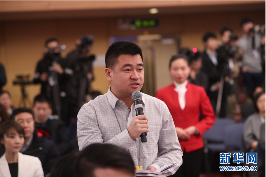 十三屆全國(guó)人大一次會(huì)議新聞中心于3月7日上午在梅地亞中心多功能廳舉行記者會(huì),邀請(qǐng)財(cái)政部部長(zhǎng)肖捷,副部長(zhǎng)史耀斌、胡靜林就“財(cái)稅改革和財(cái)政工作”相關(guān)問題回答中外記者提問。圖為每日經(jīng)濟(jì)新聞?dòng)浾咛釂?。新華網(wǎng)/中國(guó)政府網(wǎng) 陳杰 攝