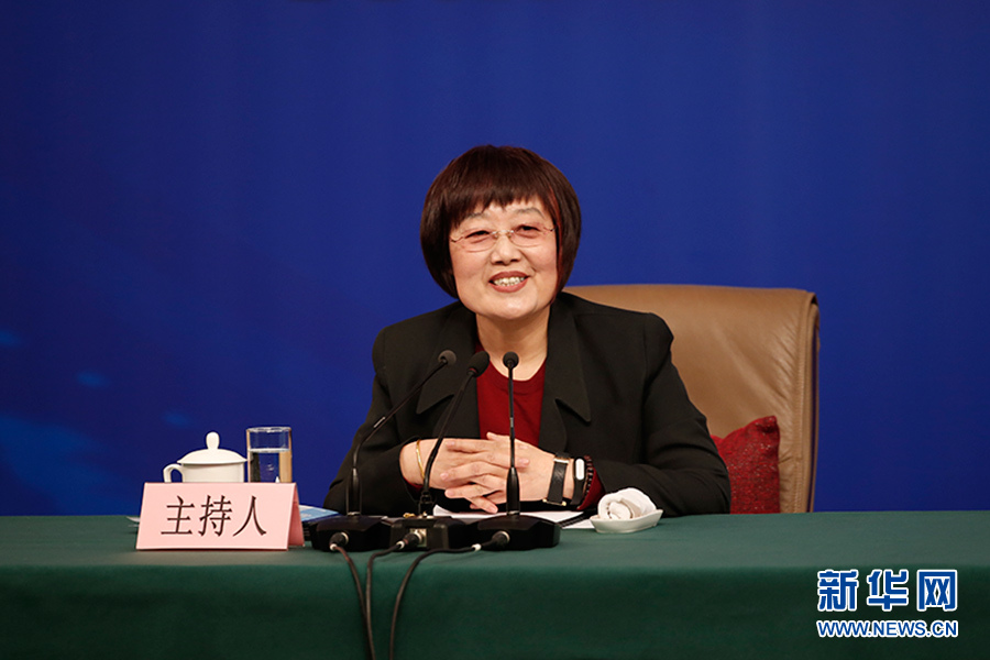 十三屆全國人大一次會議新聞中心于3月7日在梅地亞中心多功能廳舉行記者會,邀請國務(wù)院扶貧辦主任劉永富就“打好精準脫貧攻堅戰(zhàn)”的相關(guān)問題回答中外記者的提問。圖為記者會主持人王冬梅。新華網(wǎng)/中國政府網(wǎng) 陳杰 攝