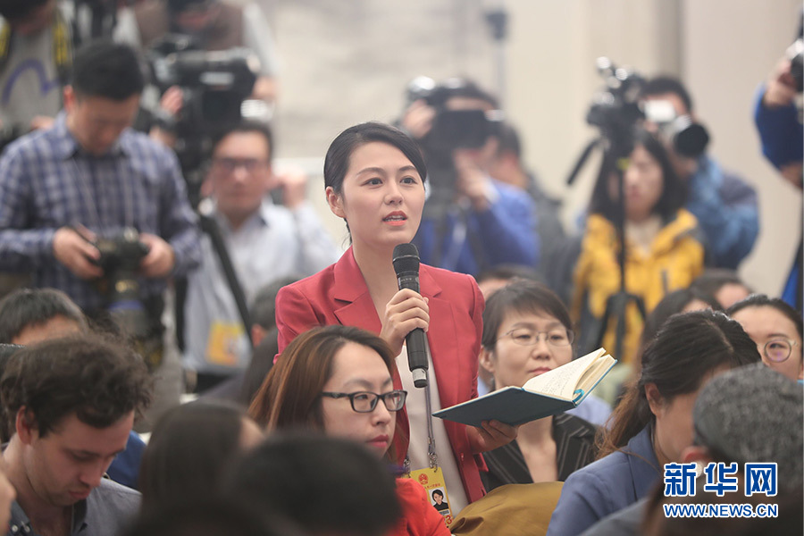 全國政協(xié)十三屆一次會議3月8日15:00在人民大會堂新聞發(fā)布廳舉行第二場記者會,邀請中央財經領導小組辦公室副主任楊偉民,中國進出口銀行董事長、黨委書記胡曉煉,農業(yè)部原副部長陳曉華,全國工商聯(lián)副主席、清華大學經濟管理學院院長錢穎一,中國中化集團有限公司黨組書記、董事長寧高寧就推動經濟高質量發(fā)展回答記者提問。圖為中央電視臺記者提問。新華網/中國政府網 翟子赫 攝