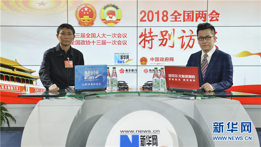 3月10日,全國政協(xié)委員、防災科技學院副院長劉春平(左)做客新華網2018全國兩會特別訪談。新華網 李相博攝