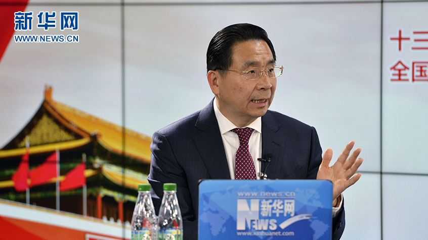 圖為全國人大代表,中國移動(dòng)浙江公司黨委書記、董事長、總經(jīng)理鄭杰做客新華網(wǎng)2018全國兩會(huì)特別訪談。新華網(wǎng) 李相博攝