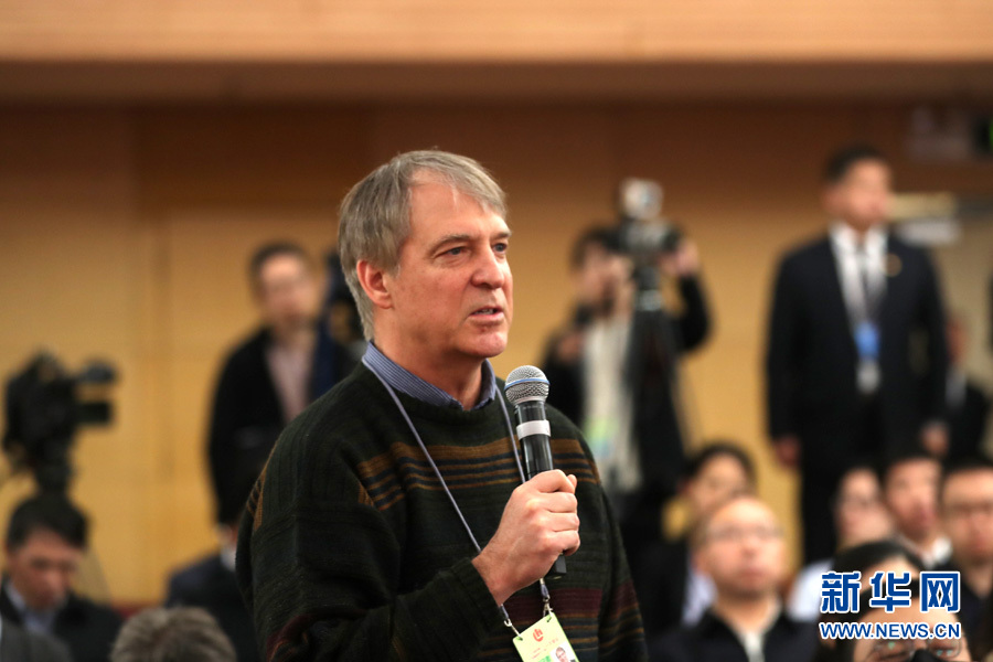 ??? 十三屆全國(guó)人大一次會(huì)議新聞中心3月10日15時(shí)在梅地亞中心多功能廳舉行記者會(huì),邀請(qǐng)國(guó)務(wù)院國(guó)資委主任肖亞慶,副秘書長(zhǎng)、新聞發(fā)言人彭華崗就“國(guó)有企業(yè)改革發(fā)展”相關(guān)問(wèn)題回答中外記者提問(wèn)。圖為彭博社記者提問(wèn)。新華網(wǎng)/中國(guó)政府網(wǎng)?曲植 攝