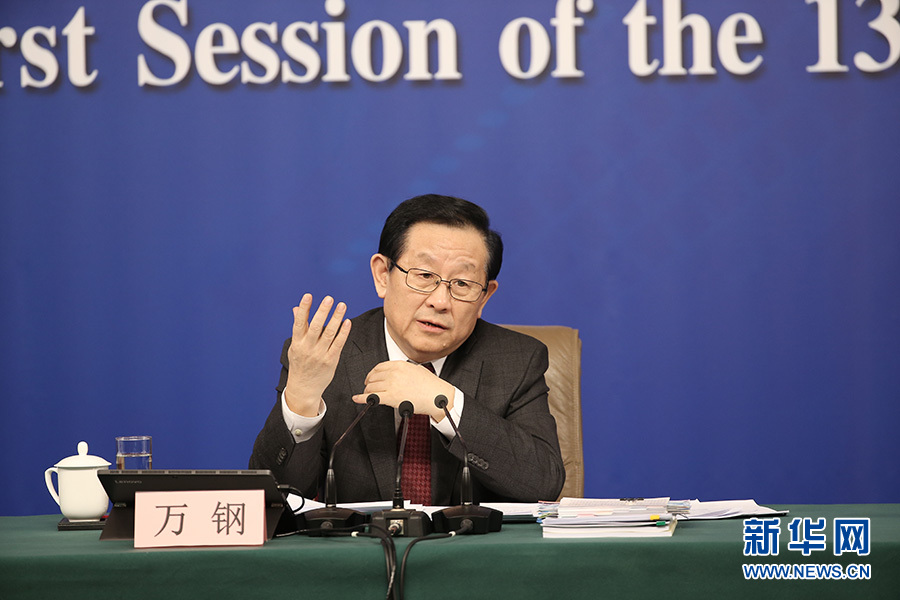 十三屆全國(guó)人大一次會(huì)議新聞中心于10日上午10時(shí)45分在梅地亞中心多功能廳舉行記者會(huì),邀請(qǐng)科技部部長(zhǎng)萬(wàn)鋼、政策法規(guī)與監(jiān)督司司長(zhǎng)賀德方、創(chuàng)新發(fā)展司司長(zhǎng)許倞就“加快建設(shè)創(chuàng)新型國(guó)家”相關(guān)問(wèn)題回答中外記者提問(wèn)。圖為萬(wàn)鋼回答記者提問(wèn)。新華網(wǎng)/中國(guó)政府網(wǎng) 翟子赫 攝