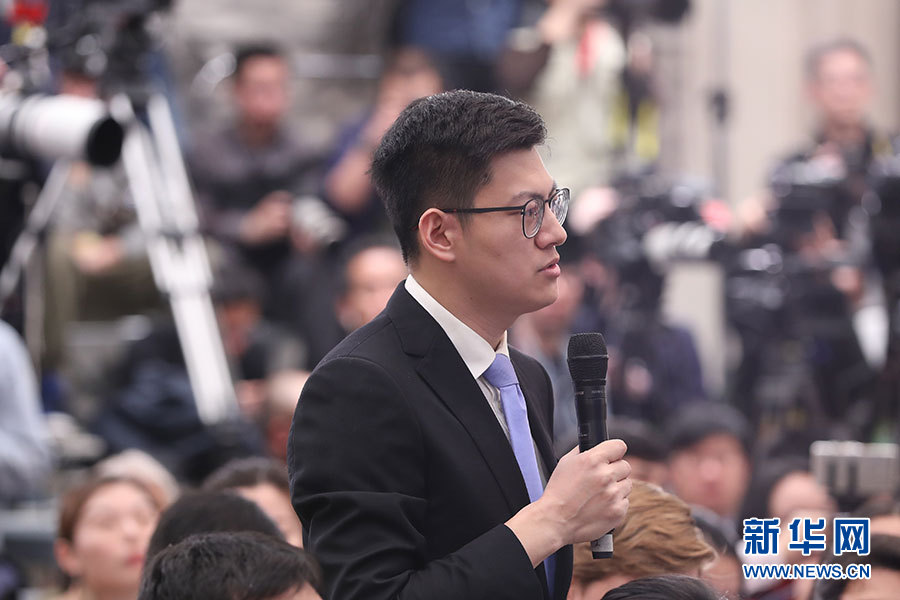 3月11日,十三屆全國人大一次會議新聞中心在人民大會堂一樓新聞發(fā)布廳舉行記者會,邀請十三屆全國人大一次會議秘書處法案組組長、全國人大常委會法工委主任沈春耀,法案組副組長、全國人大常委會法工委副主任鄭淑娜就“憲法修正案”相關(guān)問題回答中外記者提問。圖為中央電視臺記者提問。新華網(wǎng)/中國政府網(wǎng) 翟子赫 攝