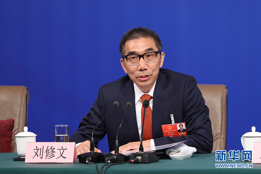 十三屆全國人大一次會(huì)議新聞中心于3月12日15時(shí)在梅地亞中心多功能廳舉行記者會(huì),邀請(qǐng)十二屆全國人大財(cái)經(jīng)委副主任委員尹中卿、教科文衛(wèi)委副主任委員吳恒、環(huán)資委副主任委員袁駟、內(nèi)司委委員鄭功成,全國人大常委會(huì)預(yù)算工委副主任劉修文、常委會(huì)辦公廳秘書局巡視員傅文杰就“人大監(jiān)督工作”相關(guān)問題回答中外記者提問。圖為全國人大常委會(huì)預(yù)算工委副主任劉修文回答記者提問。新華網(wǎng)/中國政府網(wǎng) 陳杰 攝